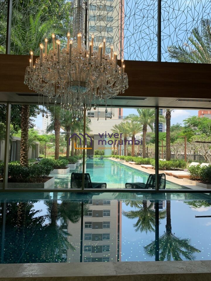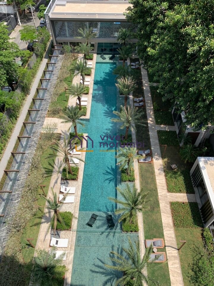 Empreendimento diferenciado na Vila Olímpia, torre única, em um terreno com 5.650m², hall de entrada com 30 m de extensão, piscina externa de 50m com pool houses para conforto e luxúria ao entorno inclusas de ar condicionado, TV e copa, além da piscina interna coberta com raias de 25m; salão de festas com lustre Baccarat assinado por Starck, design de interiores assinado por Philippe Stark (YOO).