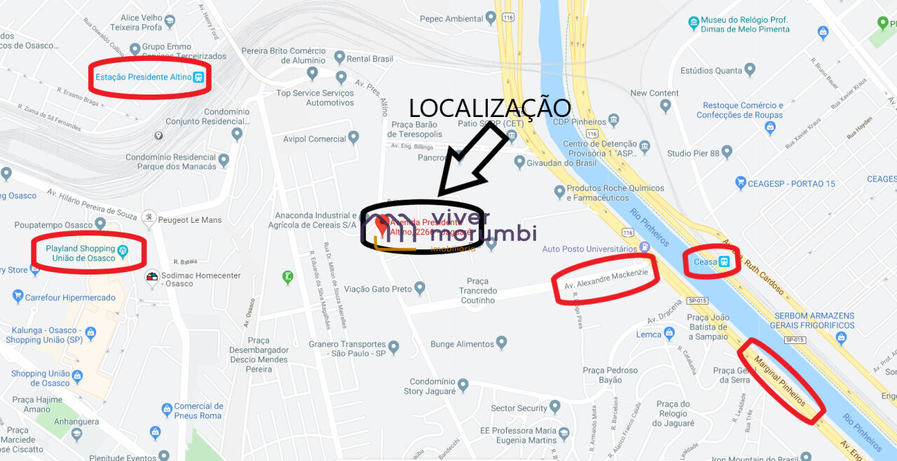 Apresentamos um incrível prédio comercial, ideal para diversas atividades empresariais, com fácil acesso à Marginal Pinheiros e ligação direta entre São Paulo e Osasco. Com uma localização estratégica, você estará a apenas: - 4,4 km da Rodovia Castelo Branco - 7,0 km da Rodovia Anhanguera - 8,0 km da Rodovia dos Bandeirantes - 8,8 km do Rodoanel - Próximo ao Shopping União de Osasco - A poucos minutos das estações CPTM Presidente Altino e CEASA Perfil de Utilização: Este imóvel é perfeito para empresas de transportes, logística, locadoras de veículos, oficinas autorizadas, blindadoras, cooperativas e empresas de táxi, além de ser uma excelente opção para estacionamentos de veículos e distribuidoras de bebidas e alimentos. Térreo: - Ampla área aberta para depósito - Área coberta para carga e descarga ou manutenção de veículos - Pátio espaçoso para manobra de caminhões de grande porte - Estacionamento para 10 veículos, ideal para visitantes e funcionários 1º Andar: - Recepção acolhedora - 2 salas grandes para reuniões - 5 salas médias para escritórios - Banheiros masculino e feminino - Copa para momentos de descontração Não perca a chance de estabelecer seu negócio em um local privilegiado e com todas as facilidades que você precisa! Entre em contato e agende uma visita! Imóveis no Morumbi. Apartamento, Casa e Condomínio Venda. Os melhores Apartamentos, Casas e Imóveis no Morumbi, Panamby, Real Parque, Jardim Guedala, Jardim Leonor, Vila Sonia, Brooklin, Campo Belo, Chácara Santo Antonio, Santo Amaro e região. Imobiliária Viver Morumbi. Veja nossas oportunidades.